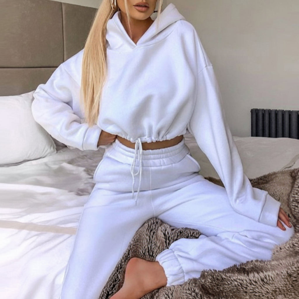 Featuring a stylish long-sleeve hoodie and matching jogger pants, it’s perfect for workouts, lounging, or casual streetwear looks. With its modern print design and smooth feel, this set combines sporty energy with feminine appeal—ideal for every season.